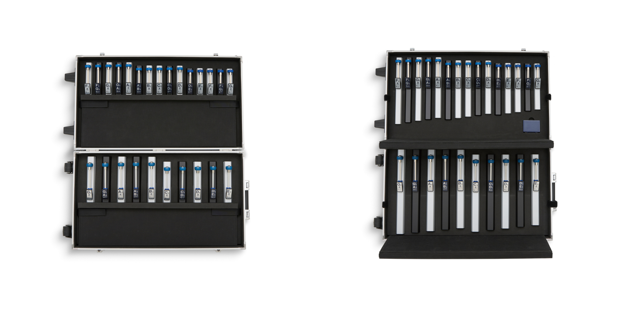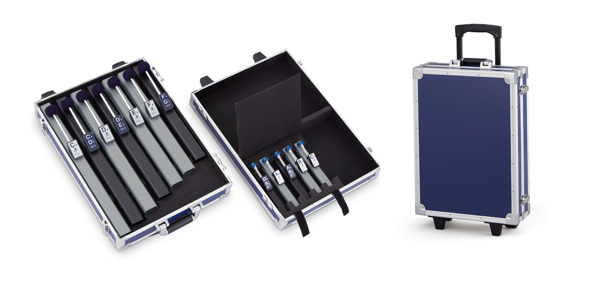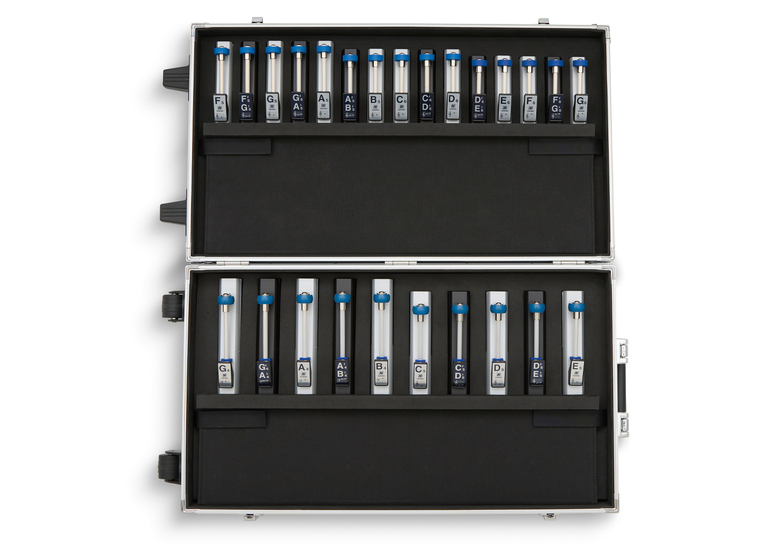 As rugged as they are beautiful, each ToneChime set (Models HB-250, HB-120A) comes complete with its own heavy duty padded travel case with handle. Each ToneChime fits snugly into its own individual labeled foam cutout. For storage or travel, you can expect your ToneChimes to perform flawlessly year after year.